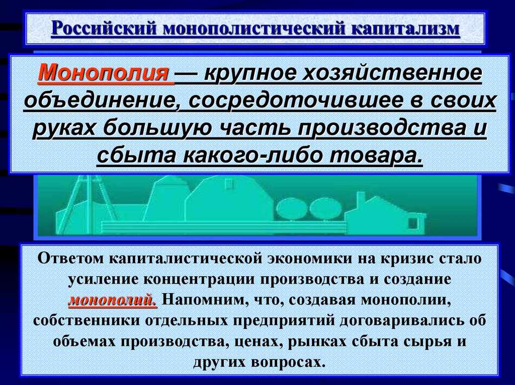 Российский монополистический капитализмМонополия — крупное хозяйственное