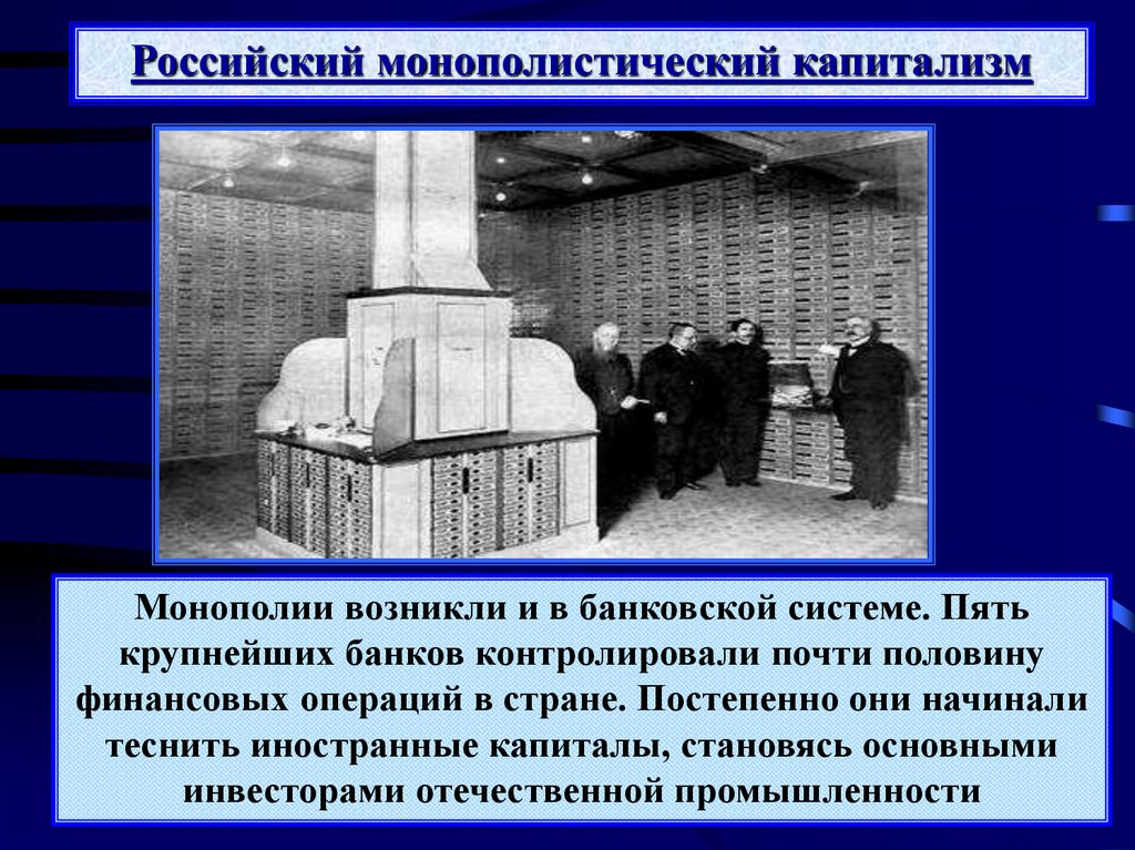 Российский монополистический капитализмМонополии возникли и в банковской системе. Пять