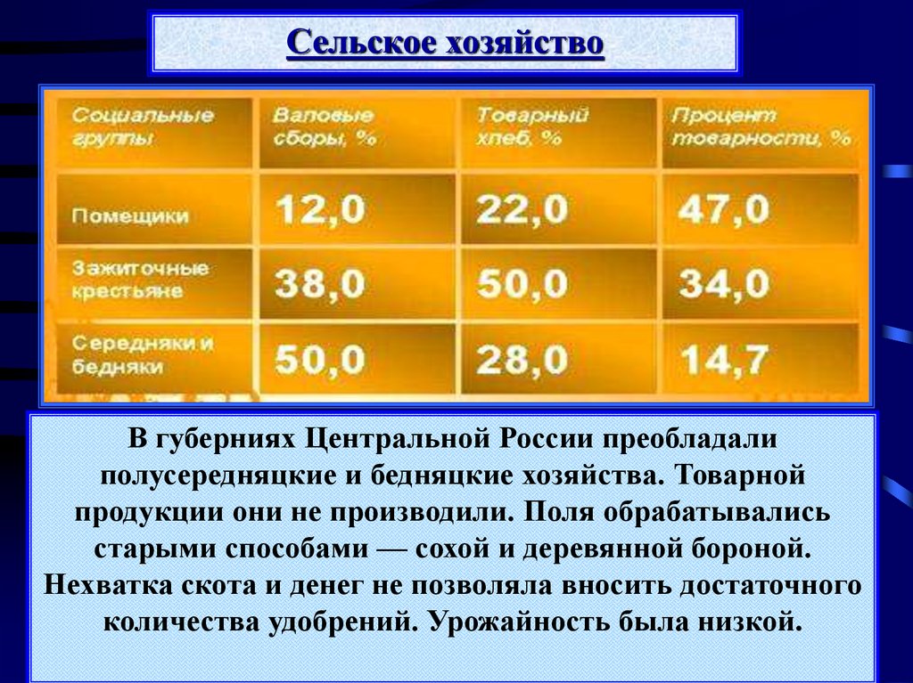 Сельское хозяйствоВ губерниях Центральной России преобладали