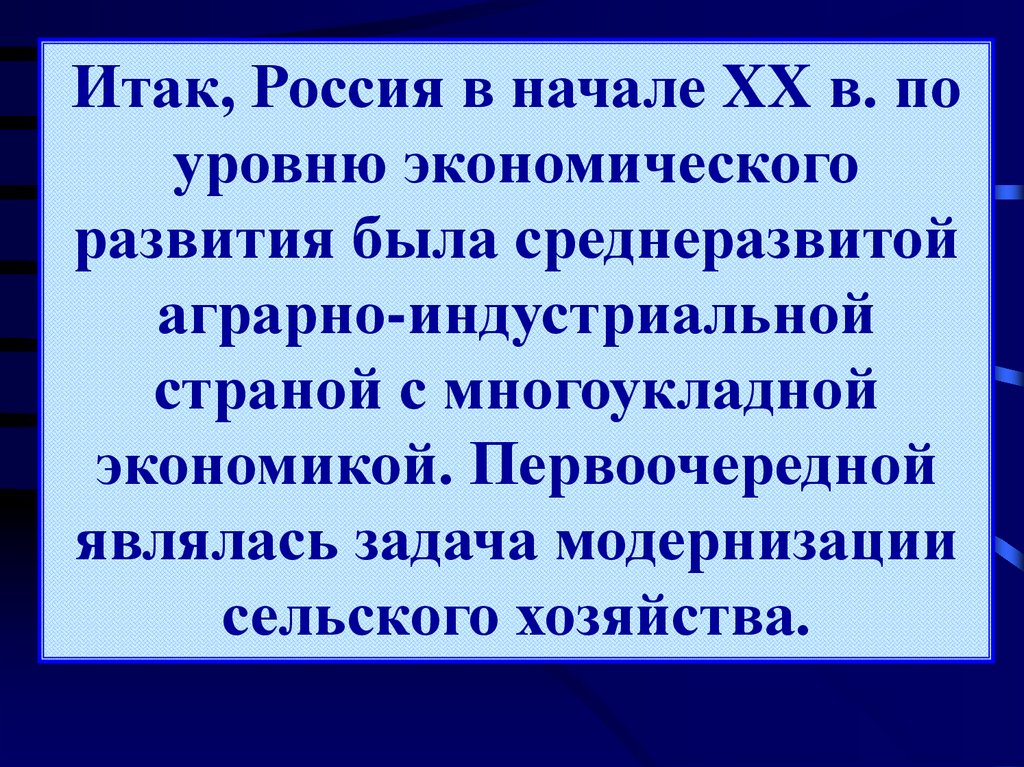 Итак, Россия в начале XX в. поуровню экономического