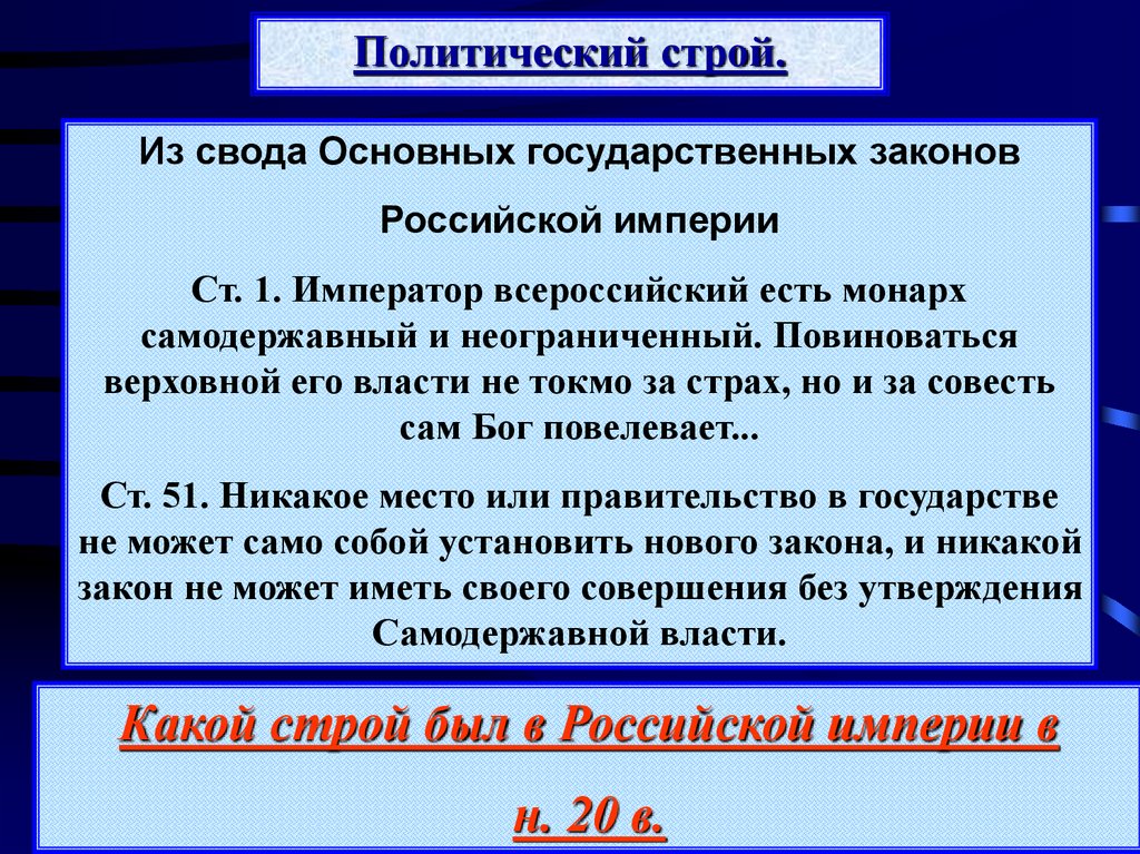 Политический строй.Из свода Основных государственных законов