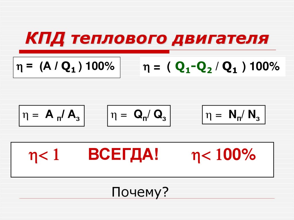 Важнейшая техническая задачаПовысить КПД тепловых двигателей