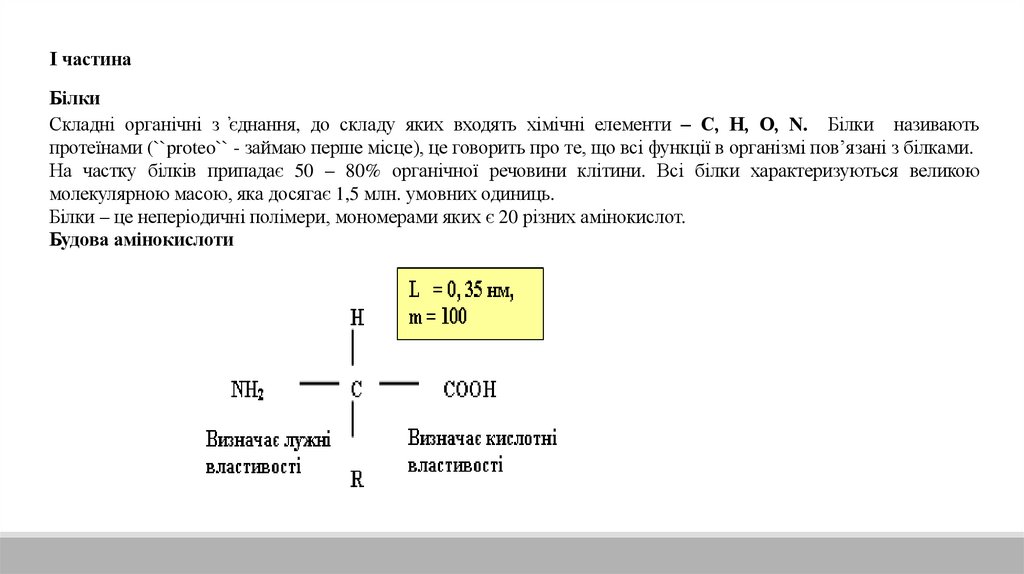 Складні органічні з ҆єднання, до складу яких входять хімічні елементи – С, Н, О, N. Білки називають