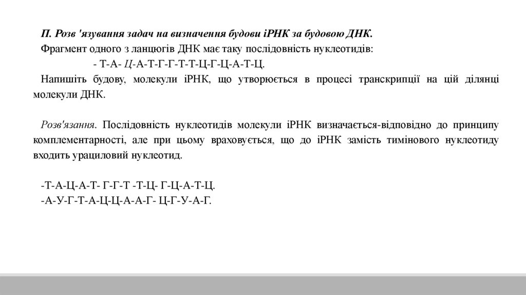 П. Розв 'язування задач на визначення будови іРНК за будовою ДНК.Фрагмент одного з ланцюгів ДНК має таку послідовність нуклеотидів: