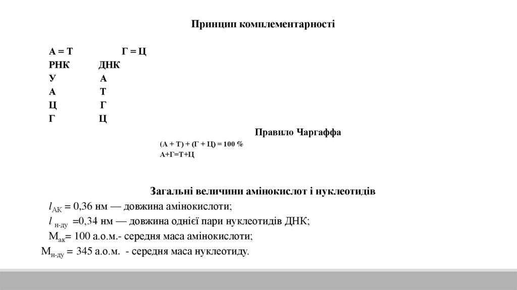 зв’язків за принципом комплементарності ( А - Т, Г - Ц ). А з Т