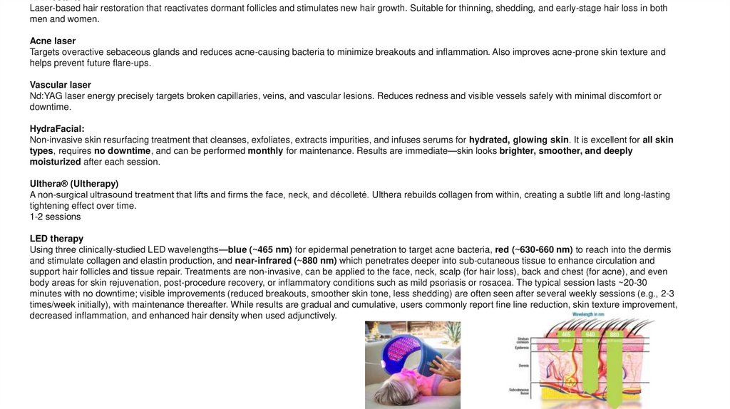 stimulating collagen and elastin production for stronger, healthier skin. It can treat the face, neck, décolletage, hands, arms, abdomen and scalp (for hair thinning/alopecia)