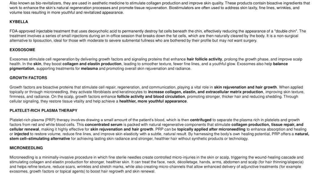 exosomes, growth factors or topical agents) to boost hair regrowth and skin renewal.