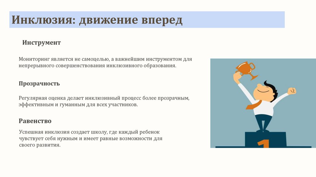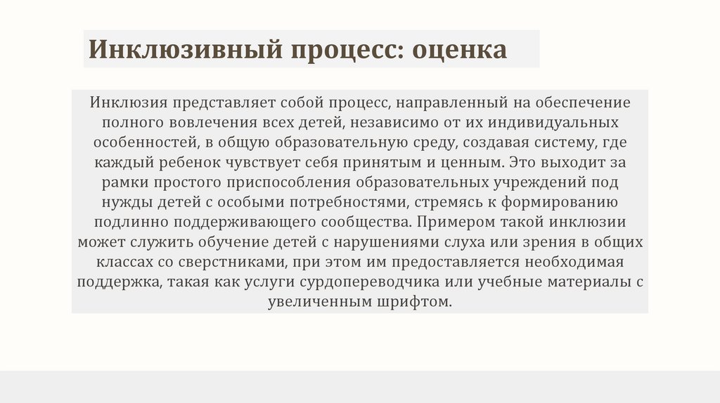 Инклюзивный процесс: оценкаИнклюзия представляет собой процесс, направленный на обеспечение