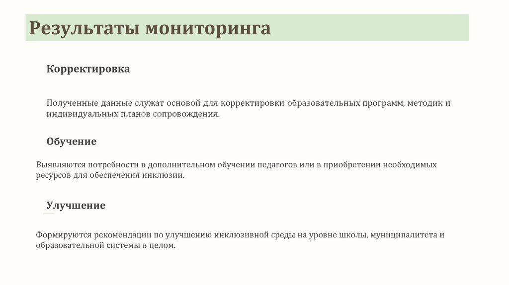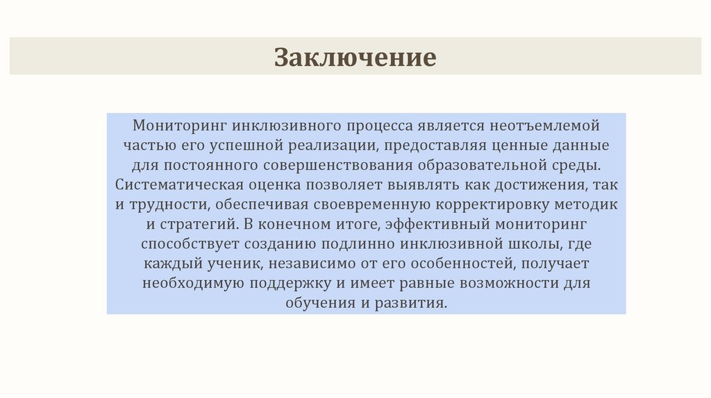 ЗаключениеМониторинг инклюзивного процесса является неотъемлемой