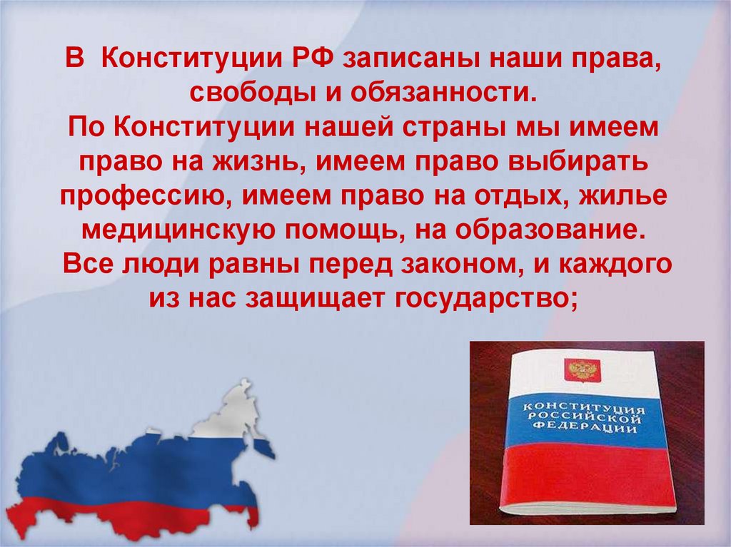 В Конституции РФ записаны наши права,свободы и обязанности.
