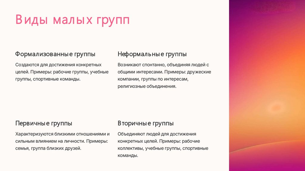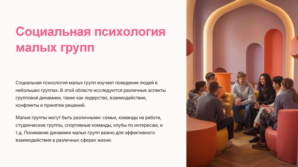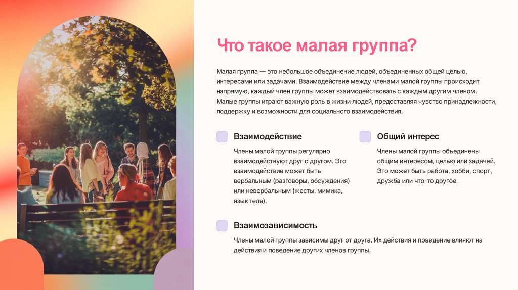 Малые группы играют важную роль в жизни людей, предоставляя чувство принадлежности,