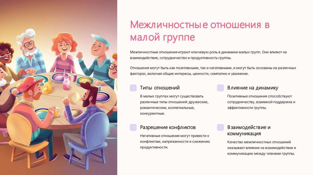 Межличностные отношения играют ключевую роль в динамике малых групп. Они влияют на