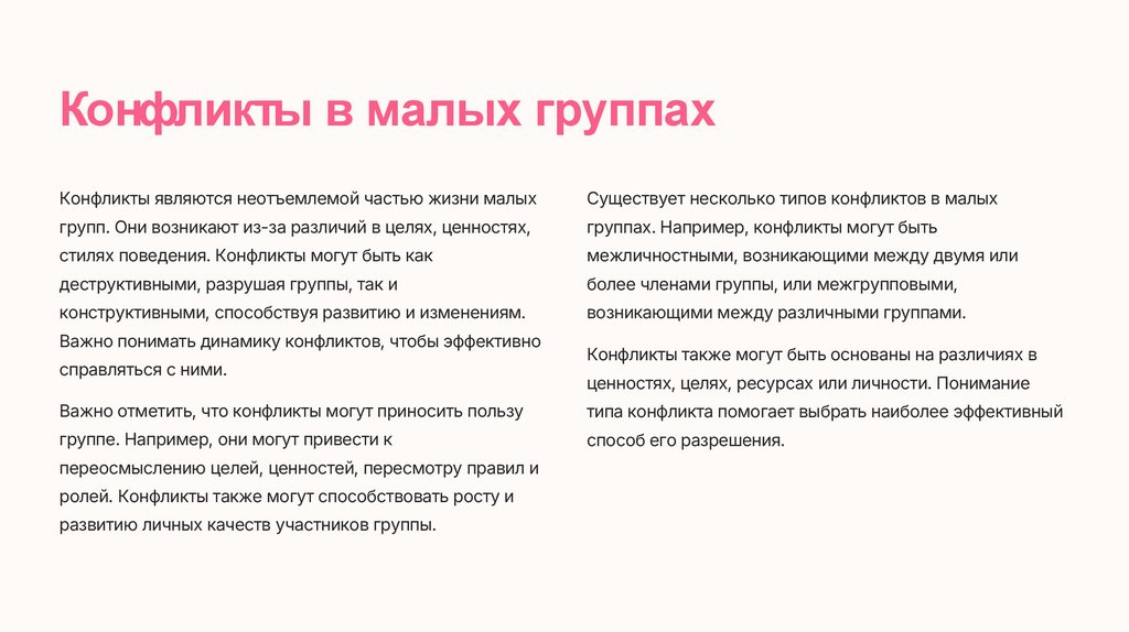 Конфликты в малых группахКонфликты являются неотъемлемой частью жизни малых