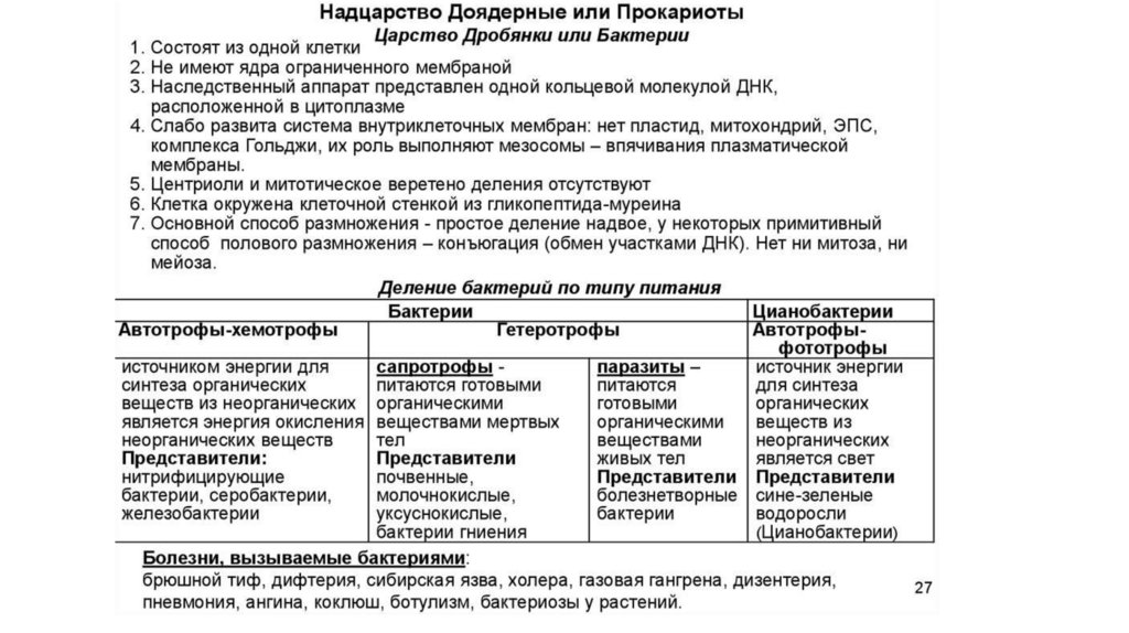 Доядерные, или прокариоты – Архебактерии, Бактерии.