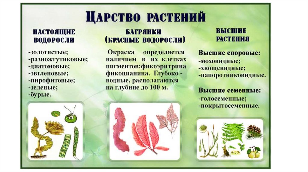красные водоросли. Гетеротрофные протисты – грибыслизевики, амеба, инфузория-туфелька.