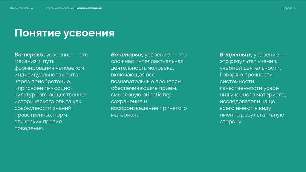 Усвоение является основным понятием всех теорийобучения (учения, учебной деятельности) вне