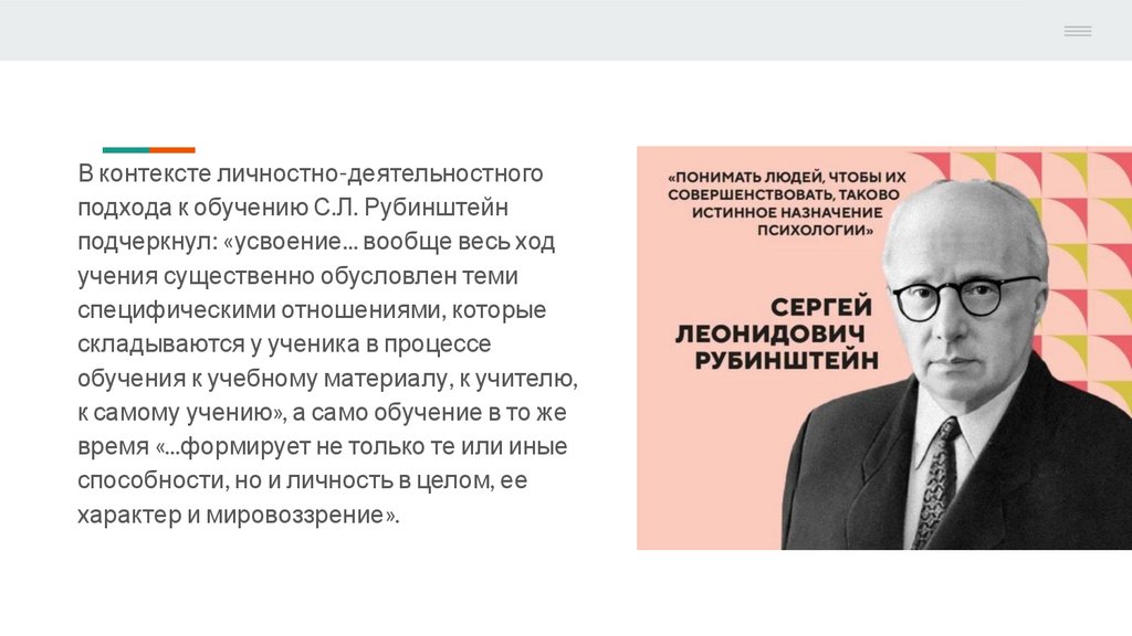 В контексте личностно-деятельностногоподхода к обучению С.Л. Рубинштейн