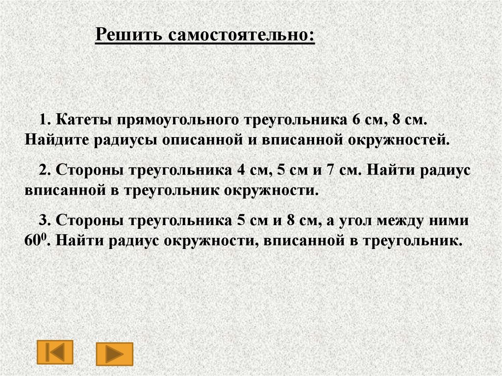 2. Стороны треугольника 4 см, 5 см и 7 см. Найти радиус