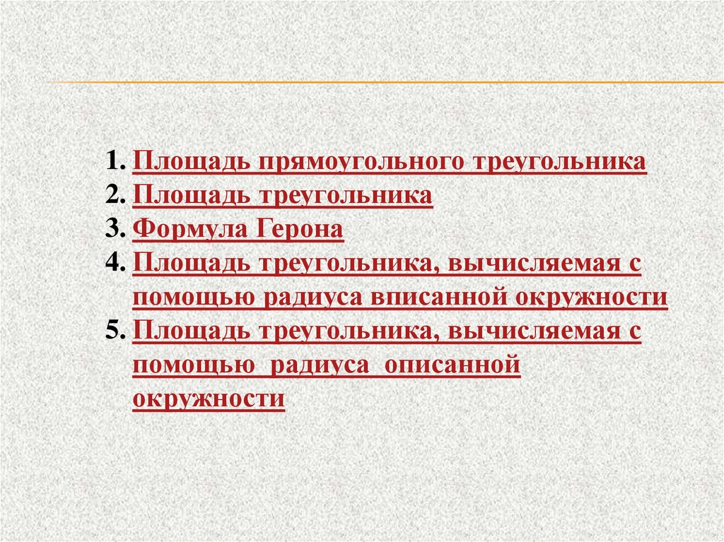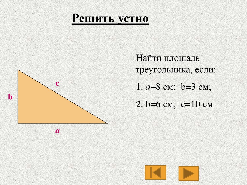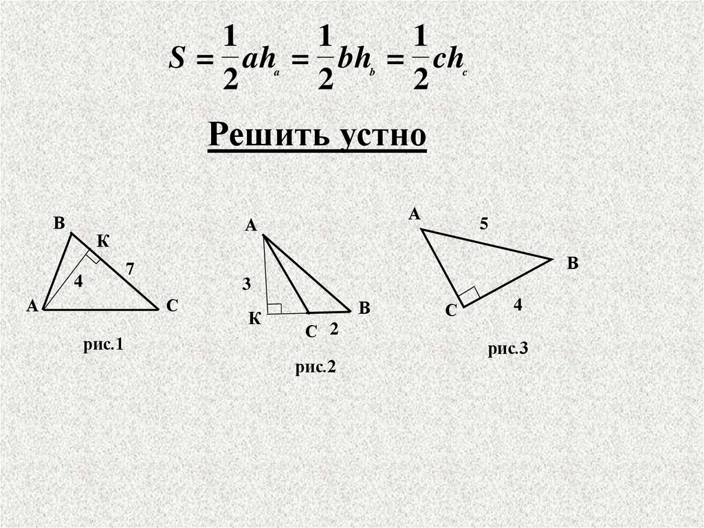 1. Площадь прямоугольного треугольника2. Площадь треугольника