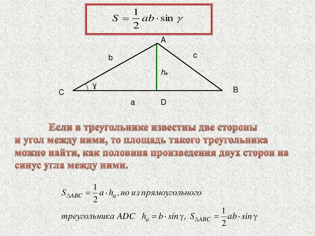 Мы знаем, что S ABC ab sin C ; sin C найдем из соотношения