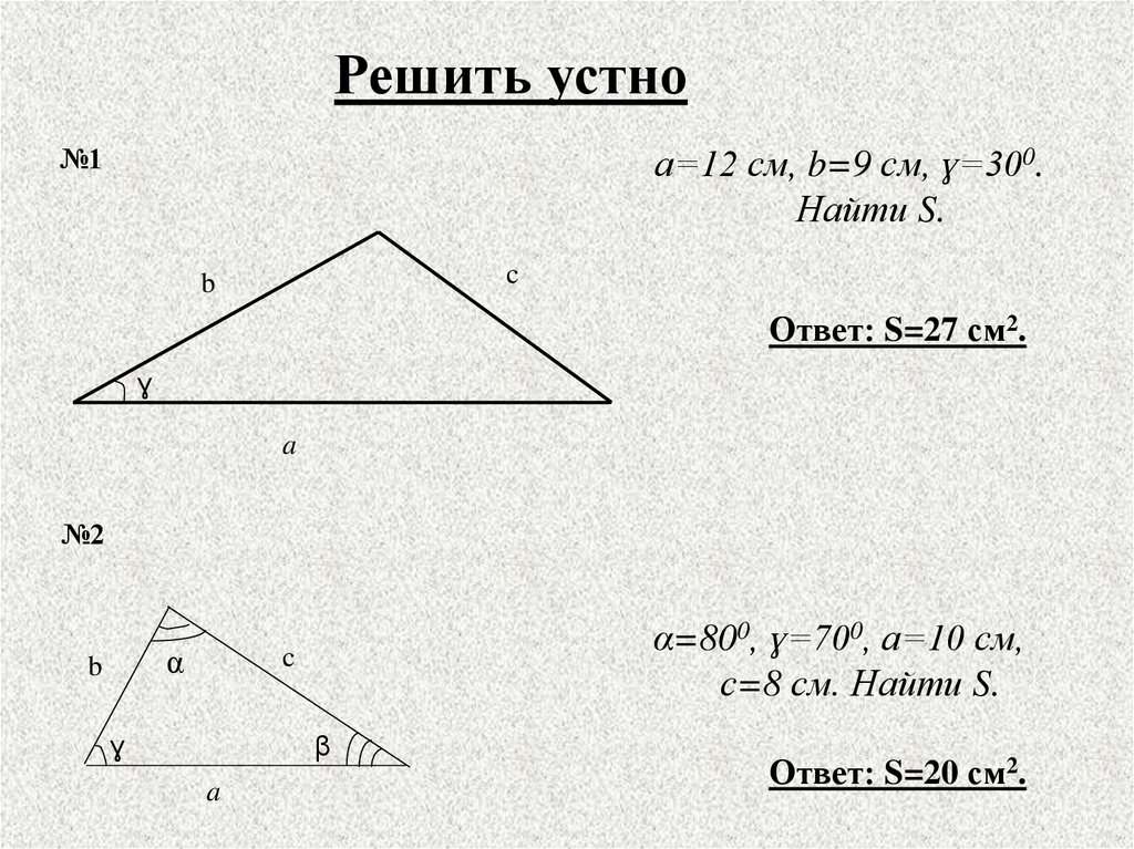 Решить устноа=12 см, b=9 см, ɣ=300.