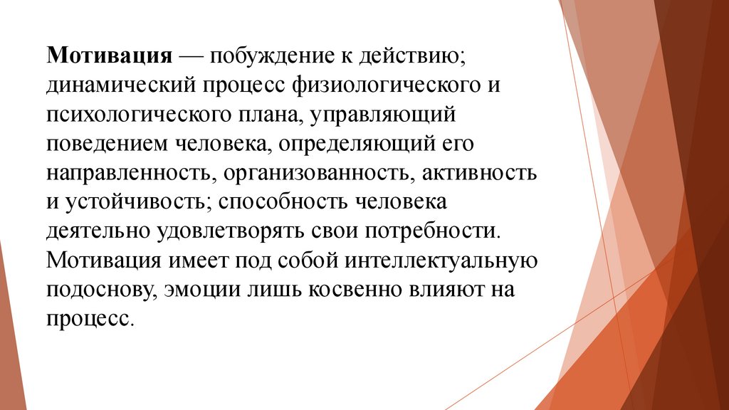 Мотивация — побуждение к действию;динамический процесс физиологического и