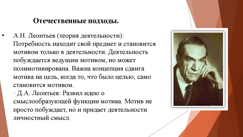 Отечественные подходы.А.Н. Леонтьев (теория деятельности):