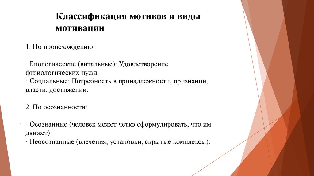 · Неосознанные (влечения, установки, скрытые комплексы).