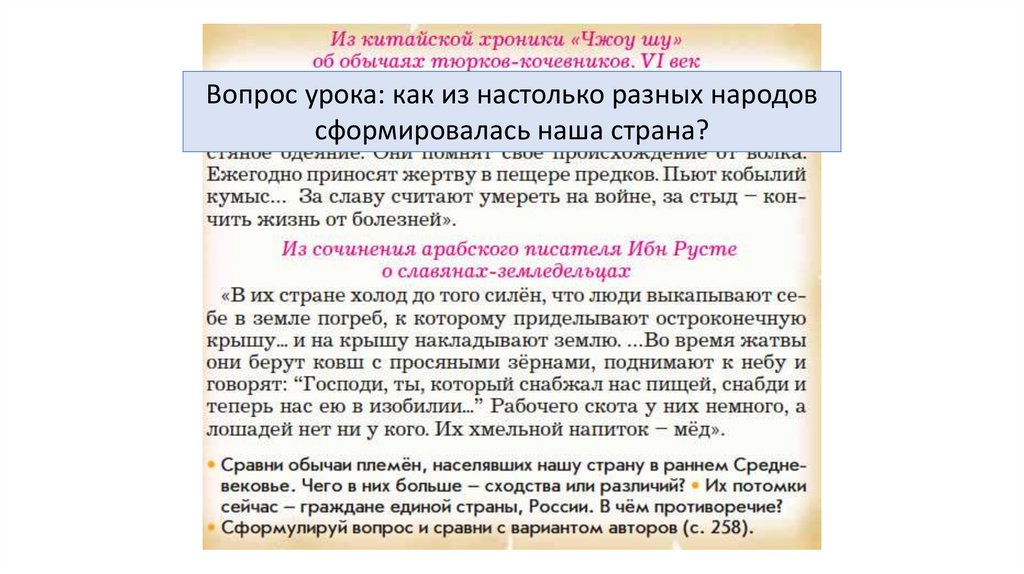 Вопрос урока: как из настолько разных народовсформировалась наша страна?