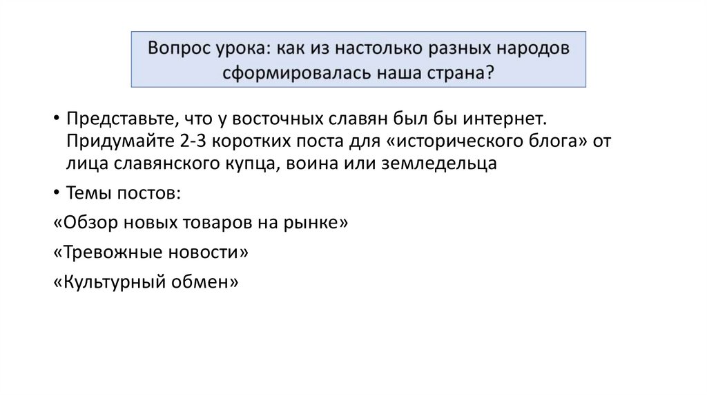 • Представьте, что у восточных славян был бы интернет.Придумайте 2-3 коротких поста для «исторического блога» от