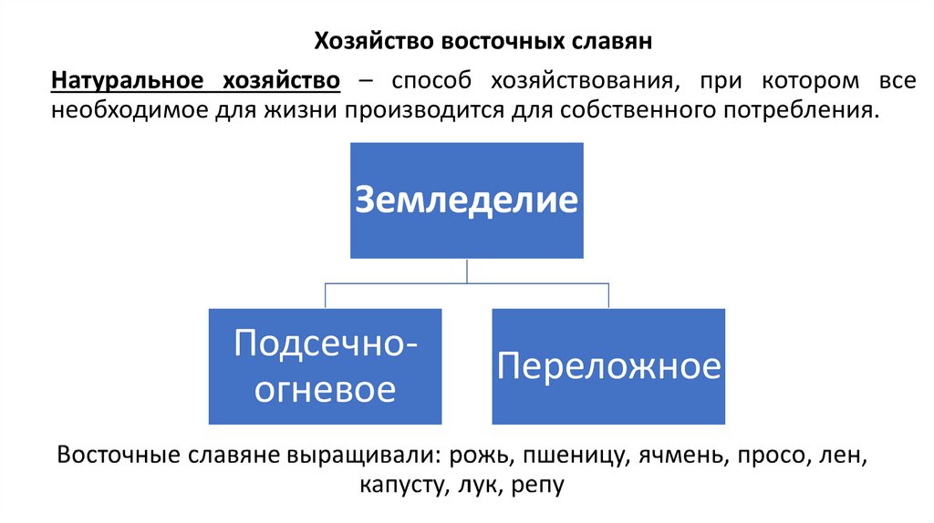 Хозяйство восточных славянНатуральное хозяйство – способ хозяйствования, при котором все