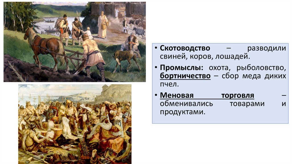 • Назовите основные занятия восточных славян. Какие два типаземледелия сложились у восточных славян?