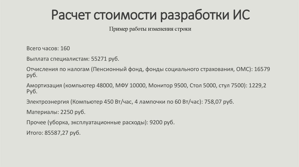 Расчет стоимости разработки ИСПример работы изменения строки