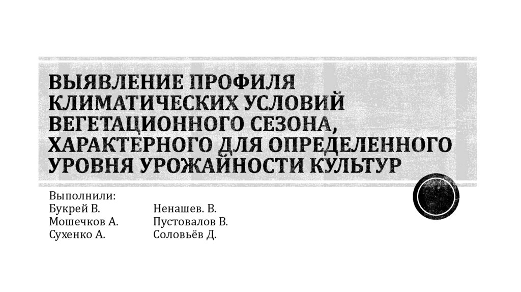 1. Выявление профиля климатических условий вегетационного сезона, характерного для определенного уровня урожайности культур