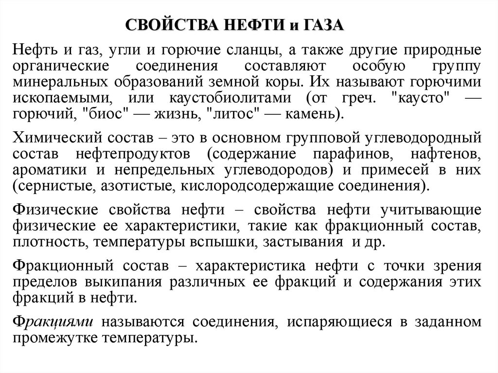 СВОЙСТВА НЕФТИ и ГАЗАНефть и газ, угли и горючие сланцы, а также другие природные
