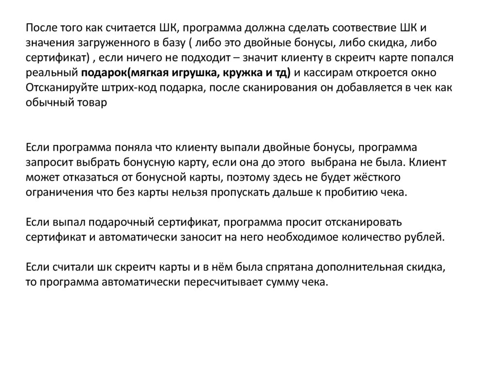 дополнительная скидка), для того, что бы кассир мог считать штрих-код и