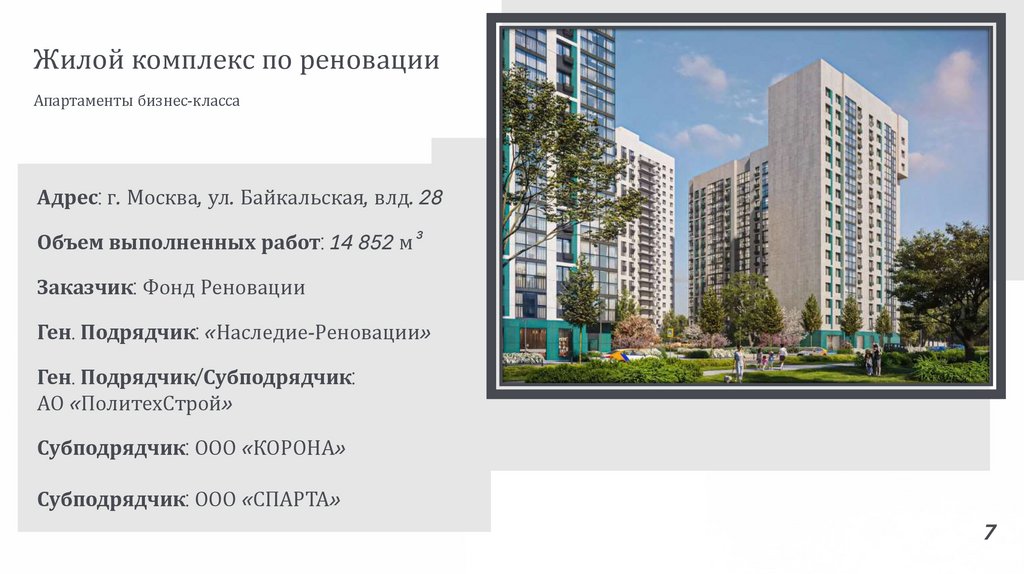 Жилой комплекс по реновацииАпартаменты бизнес-класса