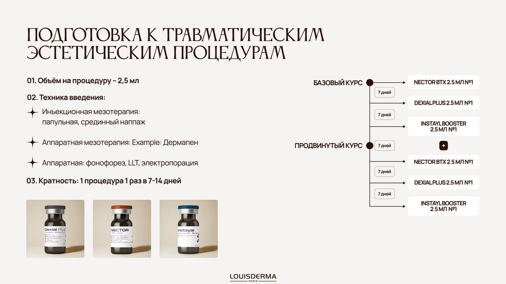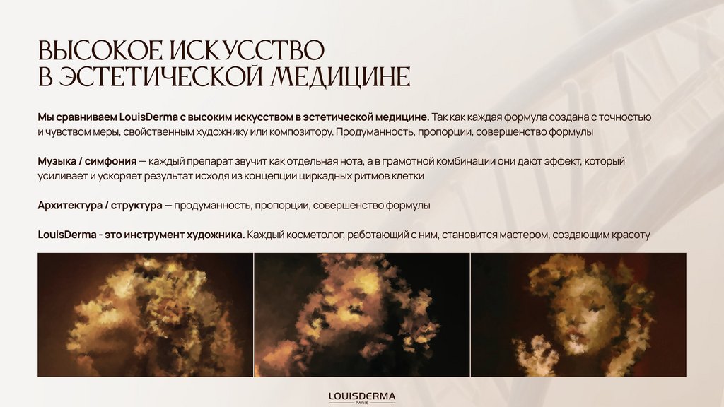 Мы сравниваем LouisDerma с высоким искусством в эстетической медицине. Так как каждая формула создана с точностью