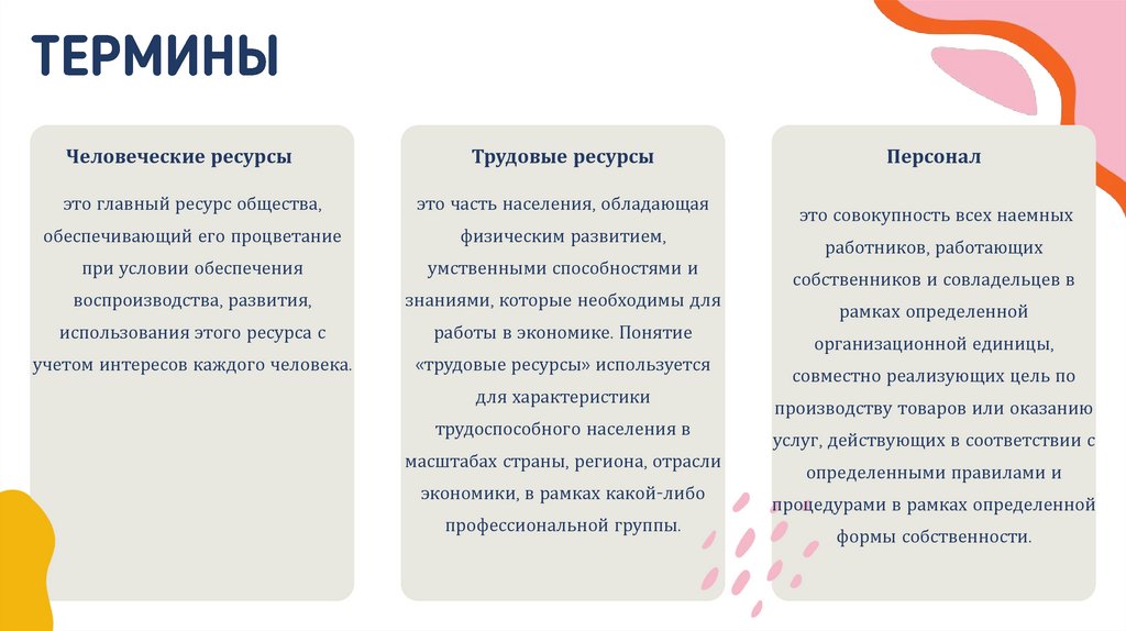 1.1.1. Основные понятия и термины организация, персонал, кадры, человеческие ресурсы, трудовые ресурсы и прочие