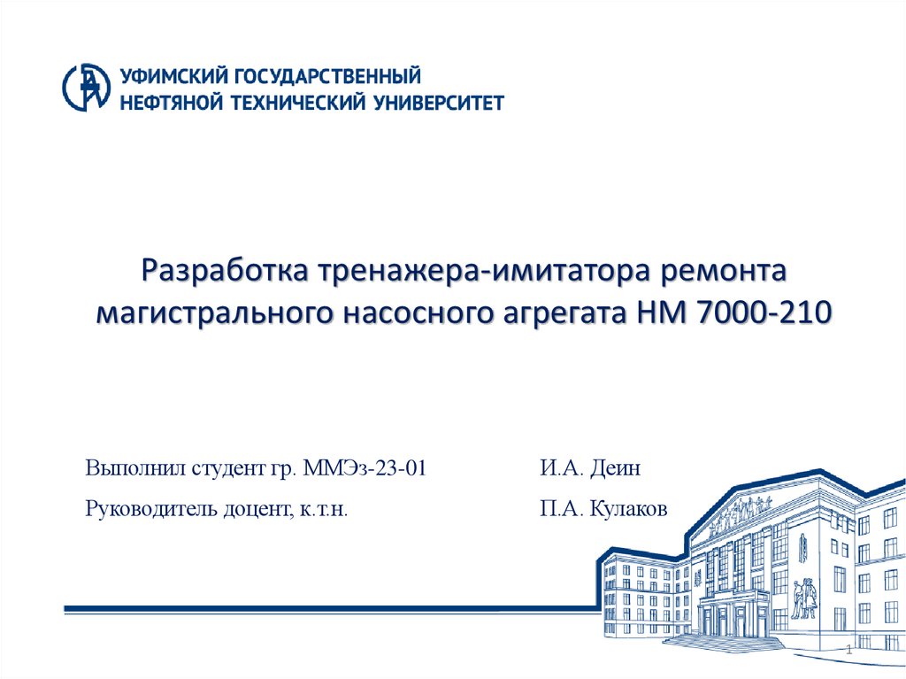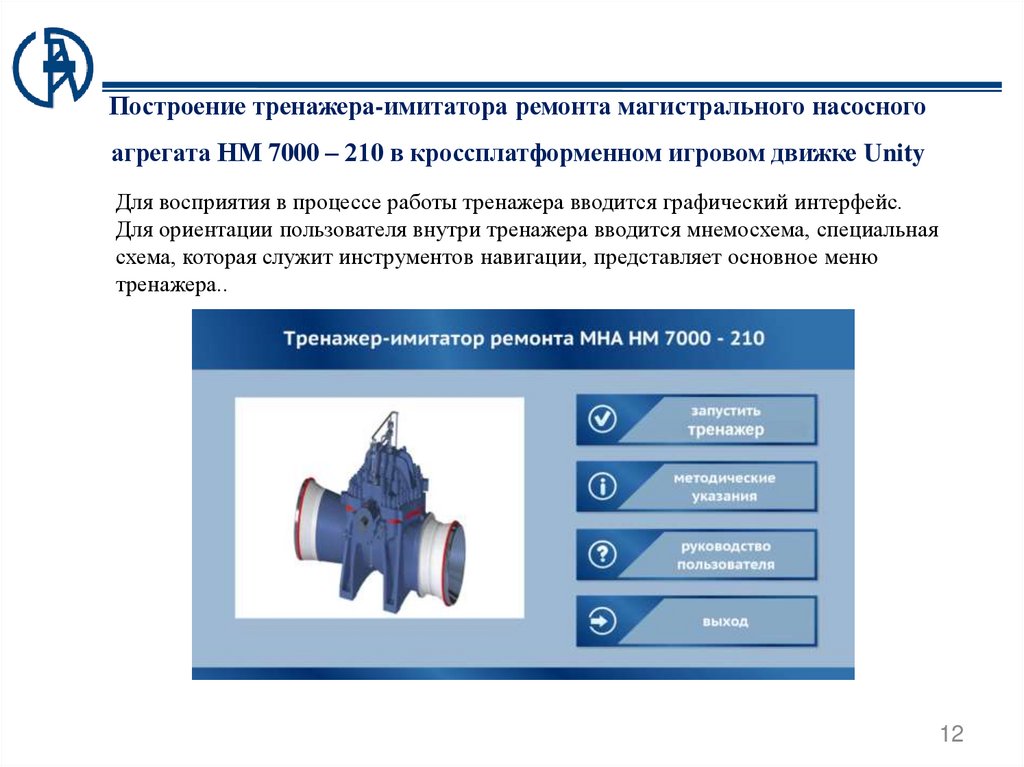 Разработка тренажера-имитатора ремонтамагистрального насосного агрегата НМ 7000-210