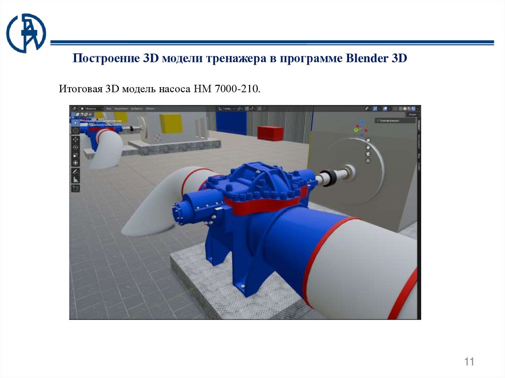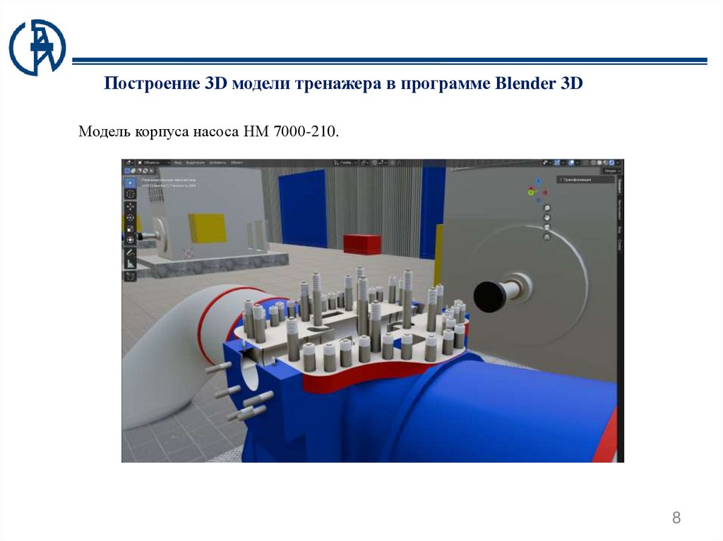 Построение 3D модели тренажера в программе Blender 3DМодель корпуса насоса НМ 7000-210 с установленным ротором