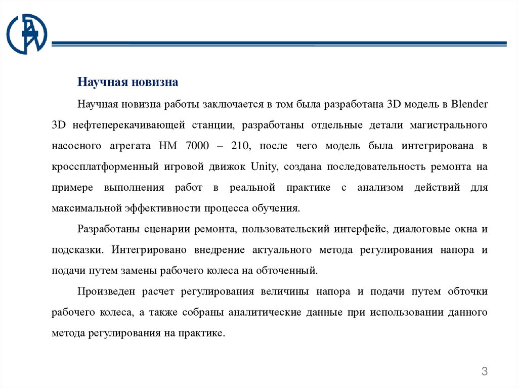 Научная новизнаНаучная новизна работы заключается в том была разработана 3D модель в Blender