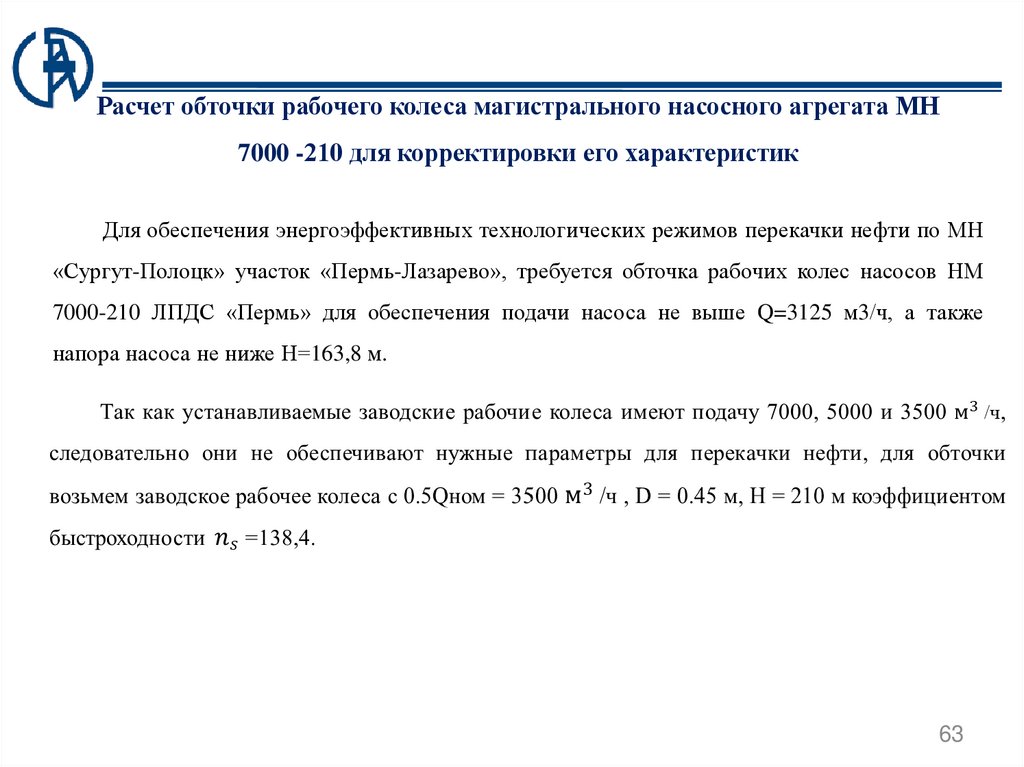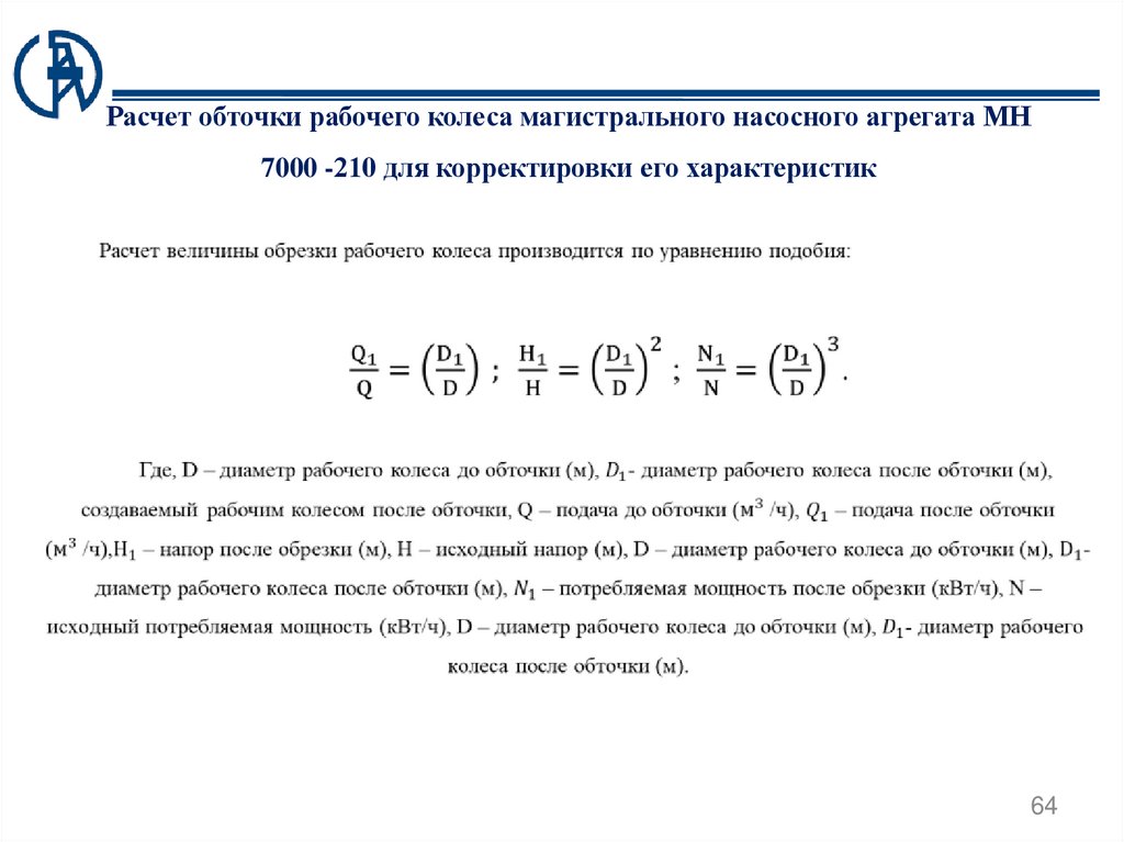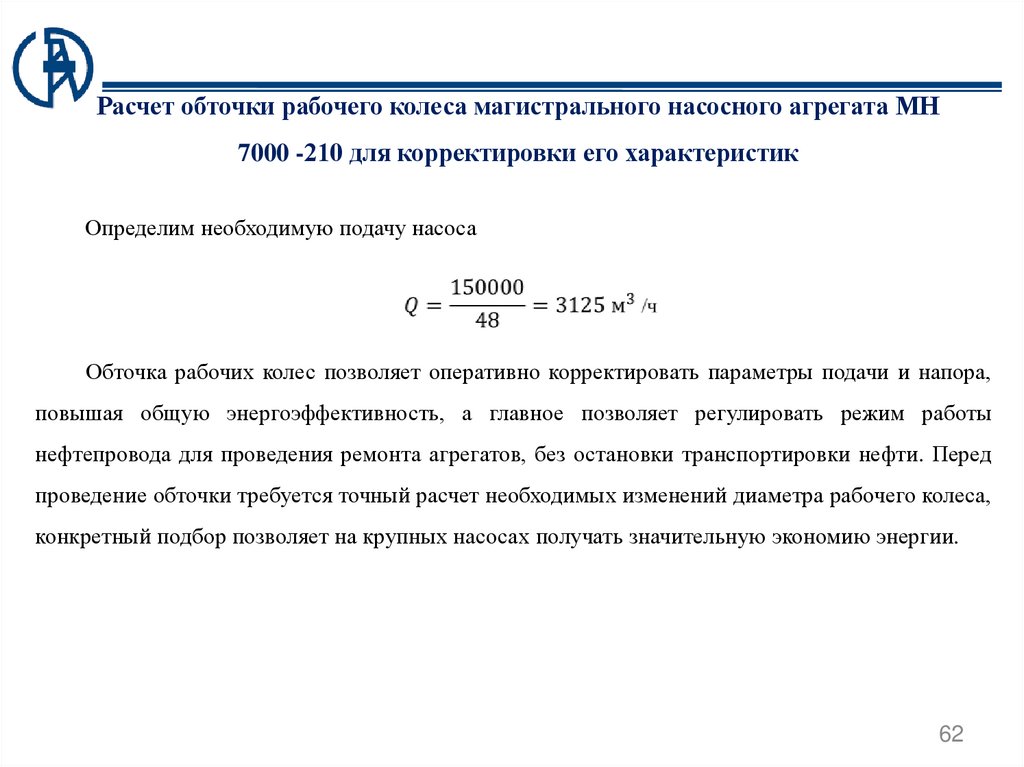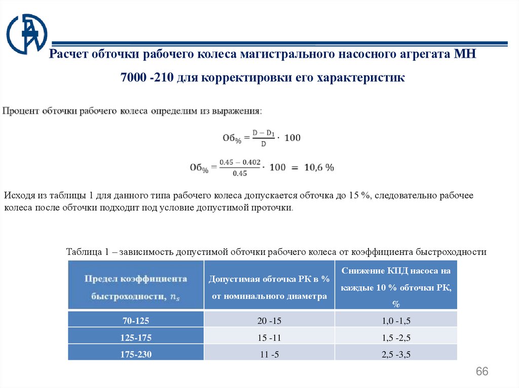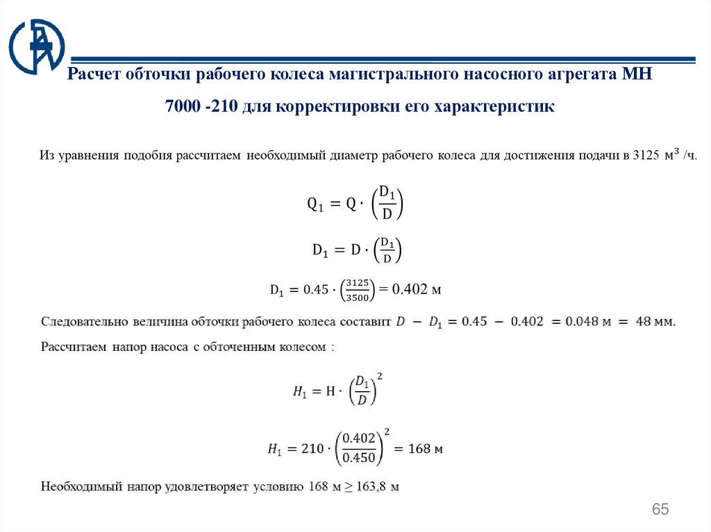 необходимую величину обточки под необходимые выходные параметры насосного