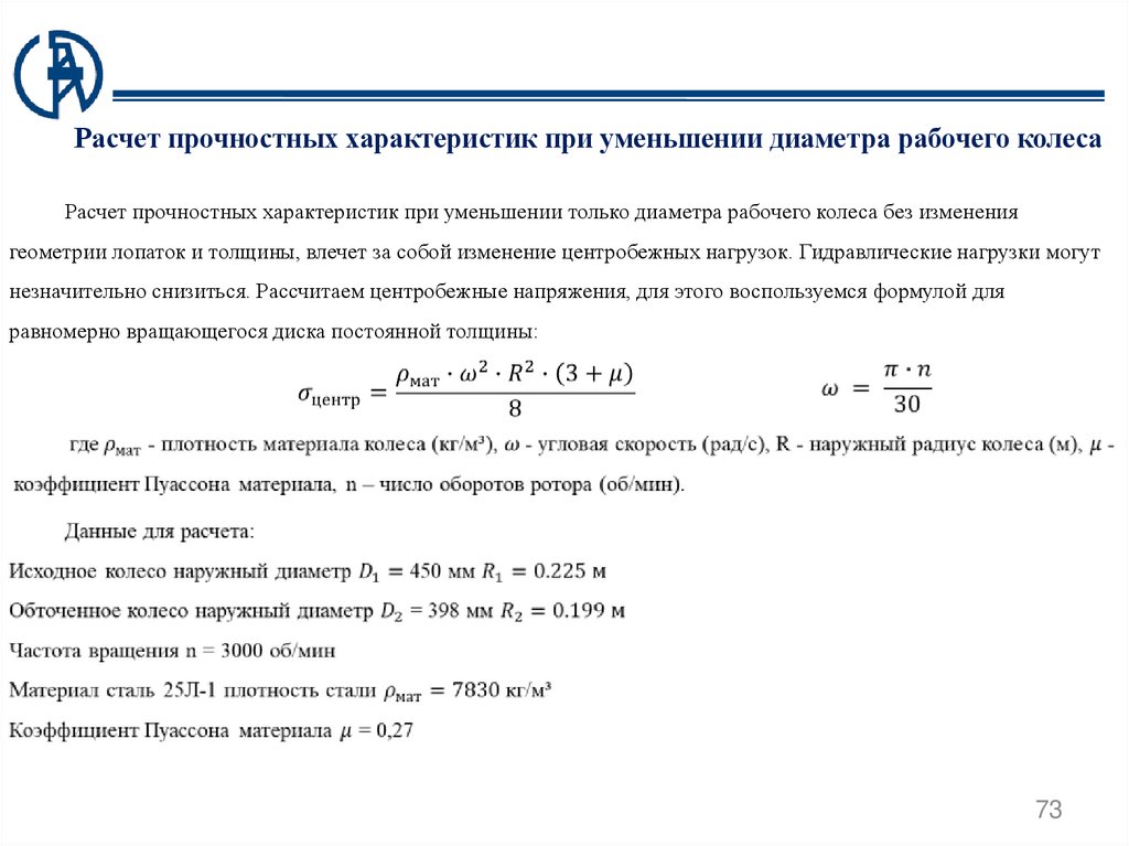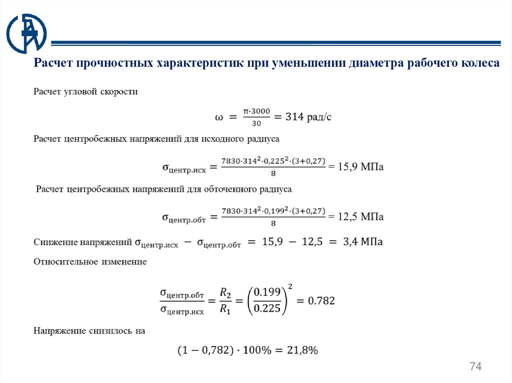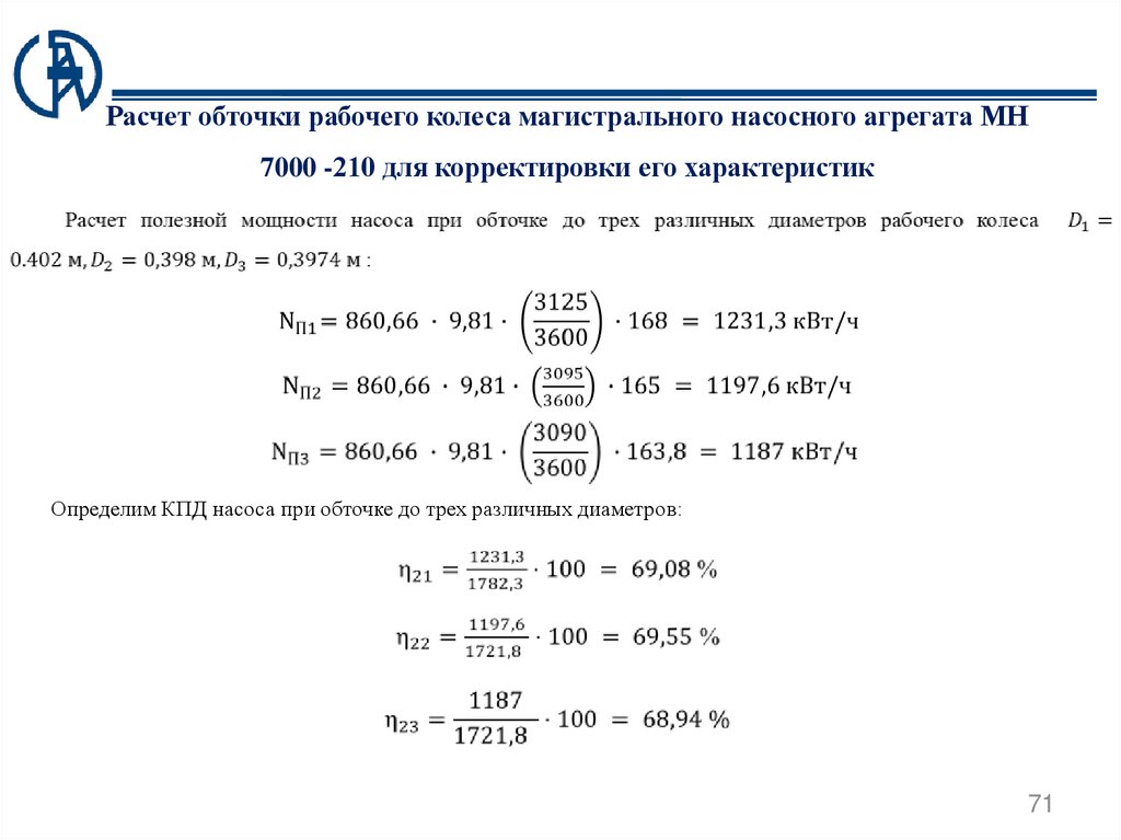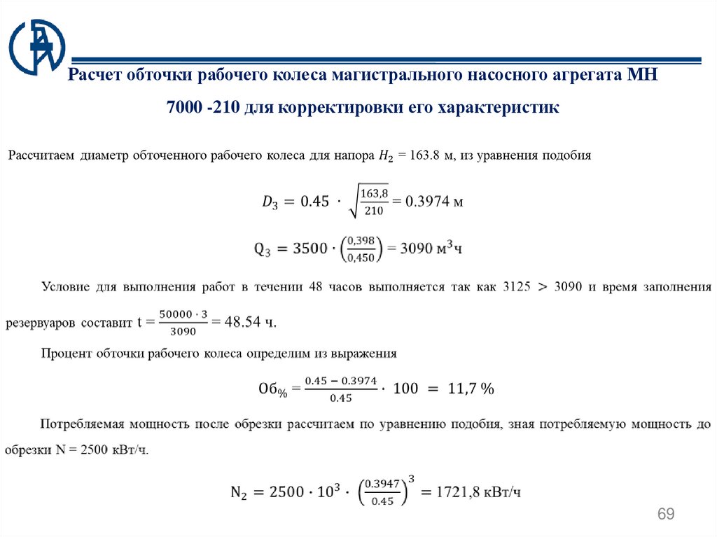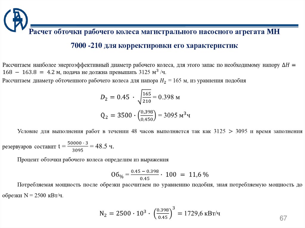 оборудования, путем обточки рабочего колеса, предлагается рассчитать