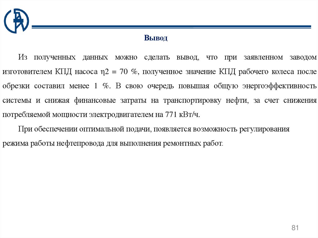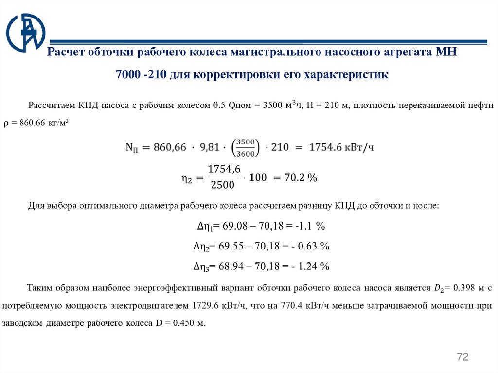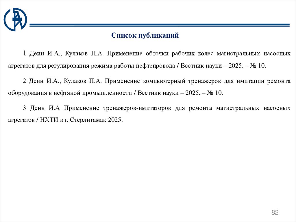 Список публикаций1 Деин И.А., Кулаков П.А. Применение обточки рабочих колес магистральных насосных