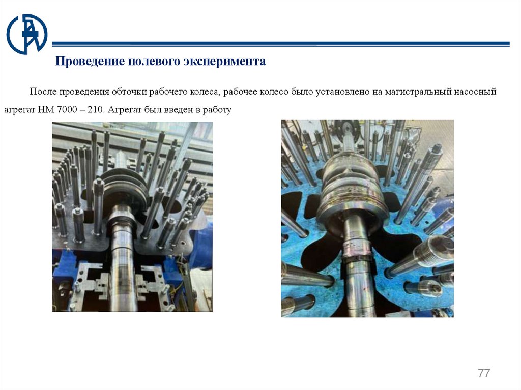 Проведение полевого экспериментаПосле проведения обточки рабочего колеса, рабочее колесо было установлено на магистральный насосный