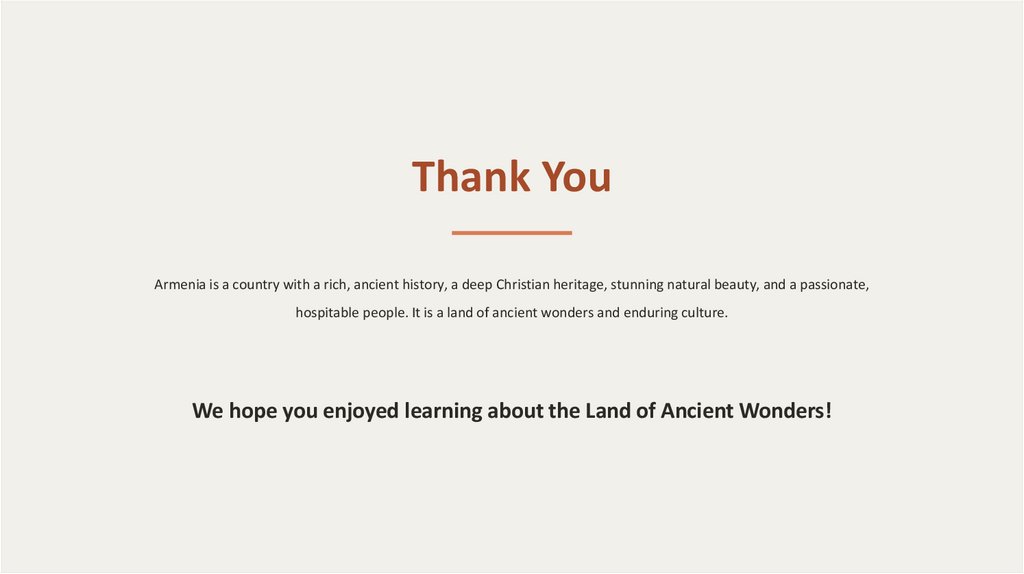 Thank YouArmenia is a country with a rich, ancient history, a deep Christian heritage, stunning natural beauty, and a passionate,