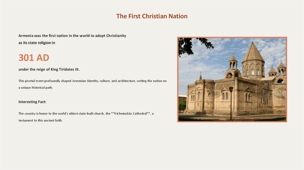 The First Christian NationArmenia was the first nation in the world to adopt Christianity