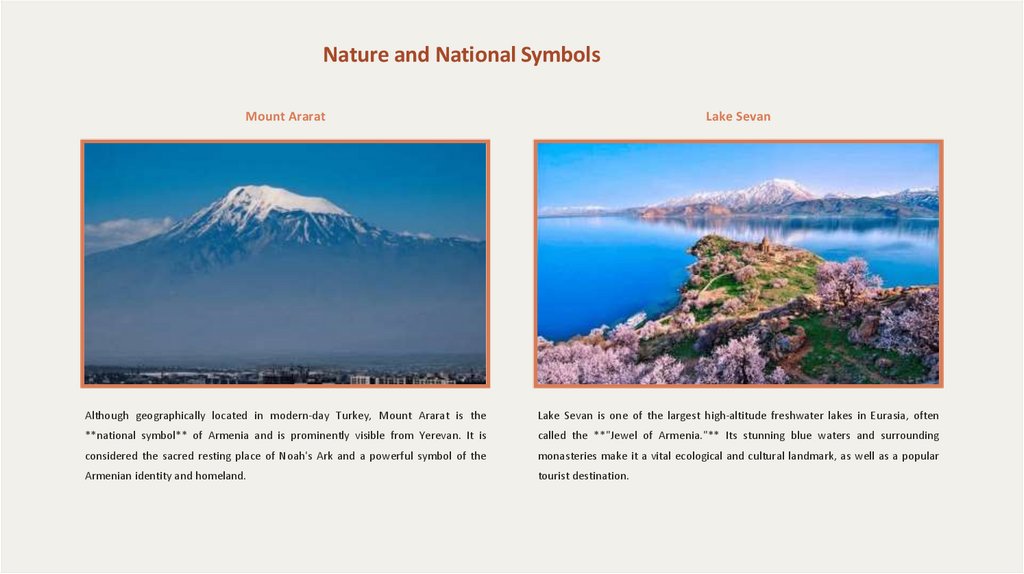 **national symbol** of Armenia and is prominently visible from Yerevan. It is
