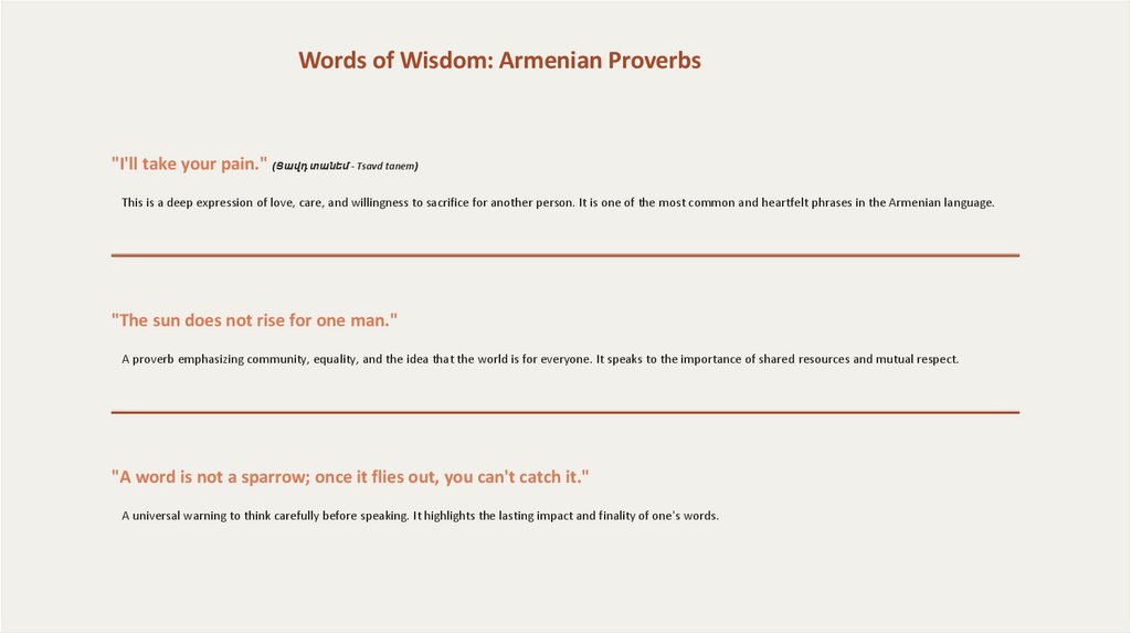 Words of Wisdom: Armenian Proverbs"I'll take your pain." (Ցավդ տանեմ - Tsavd tanem)